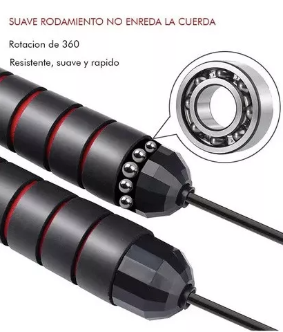 Lazo Para Saltar GYM Con Rodamiento Cuerda para saltar profesional de alta velocidad de 3 metros, mangos ajustables con DOBLE BALERO, cable de acero trenzado ligero con forro de poliuretano térmico, soporta hasta 200 revoluciones por minuto.Nuestra cuerda para saltar es la herramienta perfecta para ayudarte a incorporar ejercicios de cardio y resistencia a tu rutina diaria. Es ligera y con un diseño ergonómico, cuenta con mangos de agarre recubiertos de goma eva moldeable que se ajusta a tu mano, al mismo tiempo este material evita que se humedezca y se resbale a la hora de utilizarla.El sistema de rodamiento de balero evita la torsión y doblado de la cuerda, asegurando una rotación estable y suave. Es ideal para rutinas prolongadas ya que permite un ritmo de salto fluido y veloz.Está fabricada con los mejores materiales, pensados para ofrecer durabilidad y comodidad, cuenta con una cuerda de acero, recubierta con PVC grueso y flexible que garantiza una extensa vida útil y sin grietas. El largo de la cuerda se puede ajustar fácilmente para adaptarse a tu estatura sin problemas brindándote mayor comodidad.Se adapta para ejercicios aeróbicos, saltos, fitness cruzado, MMA, boxeo, entrenamiento de velocidad, así como para el fortalecimiento de la pantorrilla, el muslo y el antebrazo, entrenamiento de piernas y resistencia. 100% CALIDAD PREMIUM: Fabricadas en acero trenzado inoxidable grado industrial y mangos de plástico resistente. Utilízalas con toda confianza ¡Está hechas para durar!