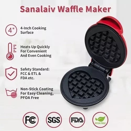 Conquista el corazón de tu familia con esta mini wafflera en forma de corazón, super práctica y de fácil uso.