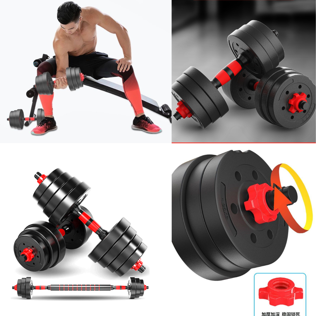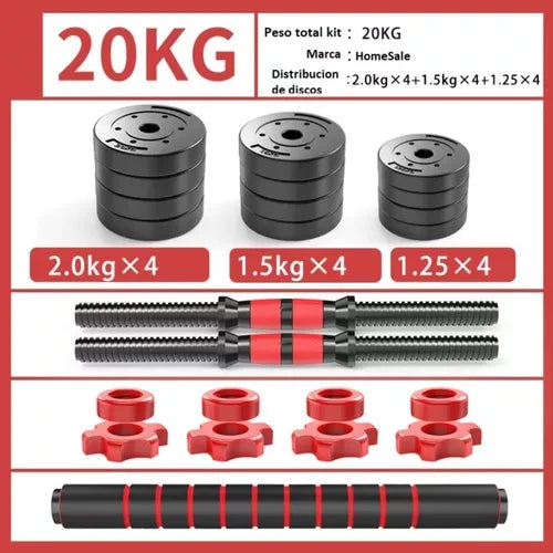 💥Barras de pesas sólidas con una unión para convertir las 2 mancuernas en una barra larga.