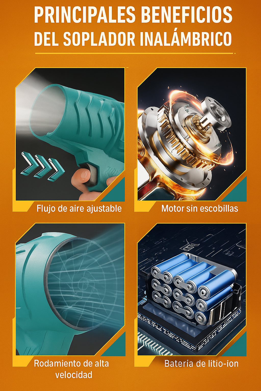 Nuestra Sopladora Inalámbrica te ofrece todo lo que necesitas para una limpieza rápida, ecológica y profesional.