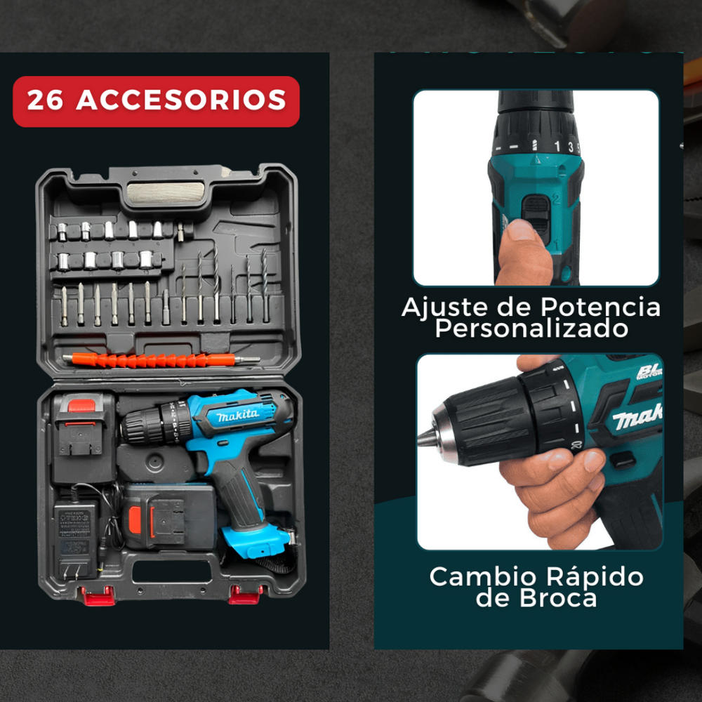 TALADRO MAKITA + CAJA HERRAMIENTAS
